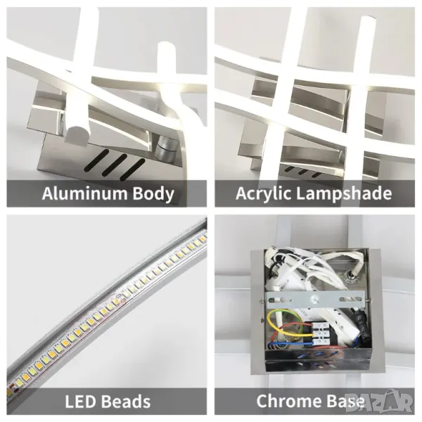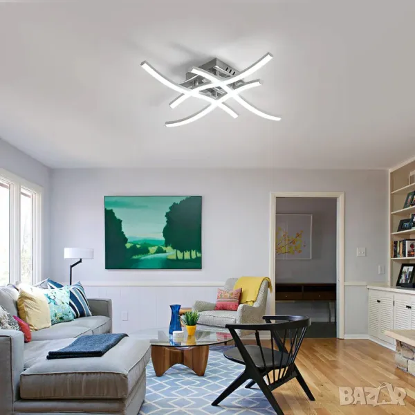 Плафониерата има елегантен извит дизайн с 4 кръстосани светлинни ленти, който привлича много вниманието и е идеален за интериорно осветление в модерен стил.