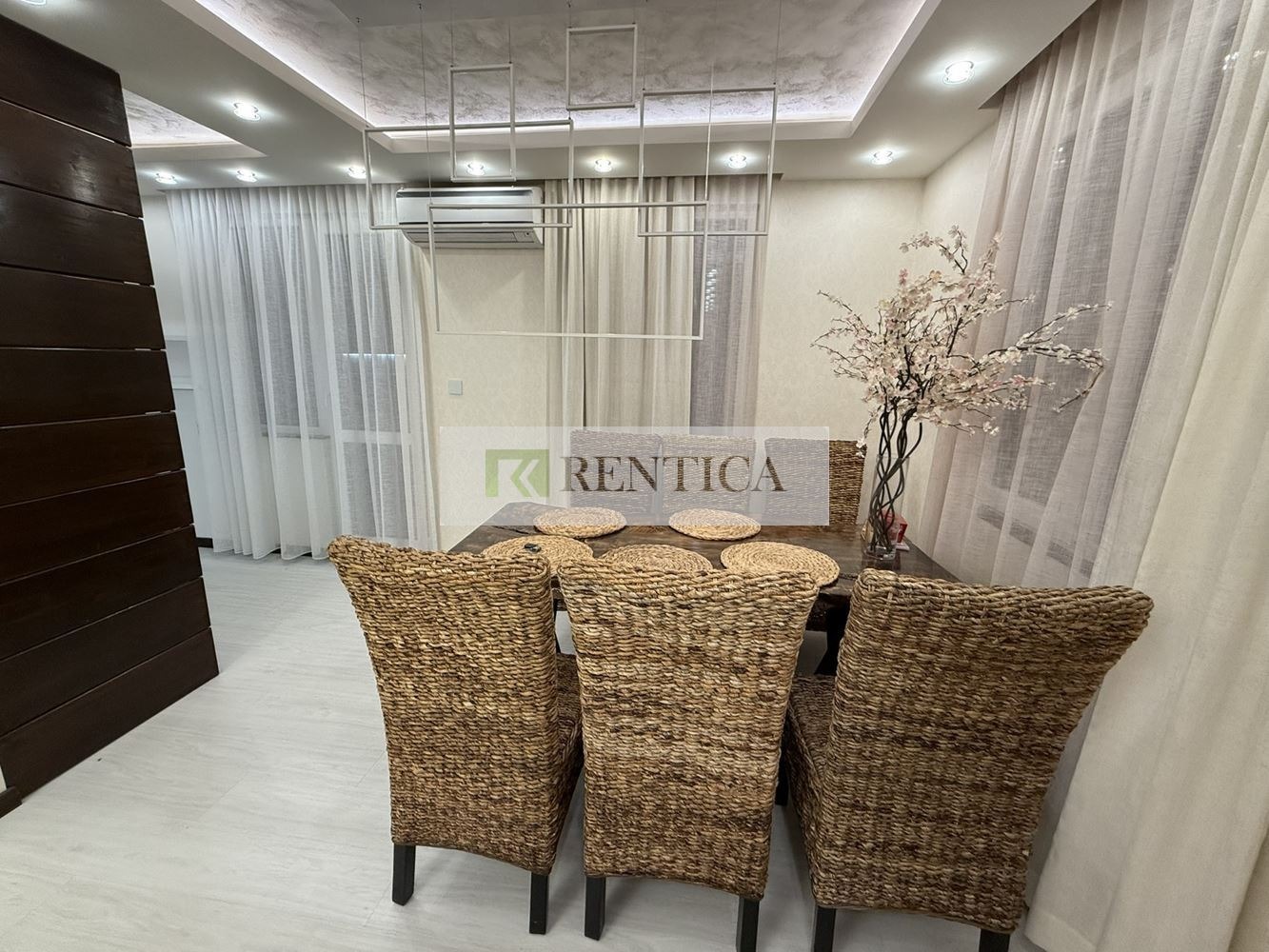 ОФЕРТА 7544 ✅Rentica.bg предлага под наем, дизайнерски, луксозно обзаведен, ТРИСТАЕН апартамент в ЦЕНТЪРА на град Варна, в непосредствена близост до Морската градина, пешеходната зона и и Фестивален комплекс. Апартаментът се намира в тухлена сграда с контрол на достъпа. Състои се от коридор, просторен дневен тракт с с трапезария и кухненски бокс, оборудван с необходимата за едно домакинство бяла техника, две спални, баня с тоалетна, две тераси. Климатизиран. С включени в цената подземно ПАРКОМЯСТО, телевизия, интернет, СОТ, такса поддръжка на общи части! ИЗКЛЮЧИТЕЛНО СТИЛНО ОБЗАВЕДЕН! Отдава се дългосрочно.✅