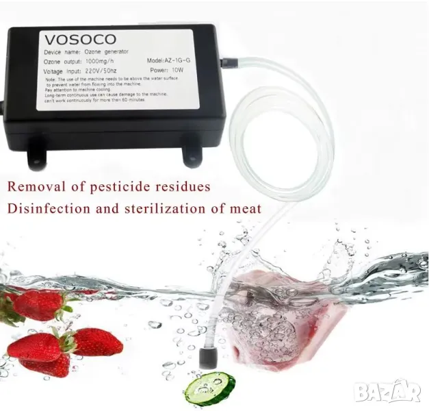 ПРЕЧИСТВАНЕ НА ВОДА И ВЪЗДУХ: Можете да използвате генератора на озон за пречистване на вода, почистване на съдове, плодове, зеленчуци и др.