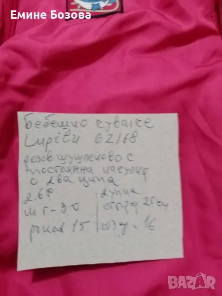 Розово шушлеково чувалче екскимос Lupilu с постоянна качулка,два ципа 62/68. Ширина под мишници 30смРъкав 15см.