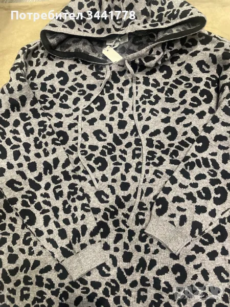 Страхотна плетена рокля -туника с качулка .Актуален и модерен принт .Топлина и комфорт.Дължина 93 см талия 56 см .Има доста разтегливост
