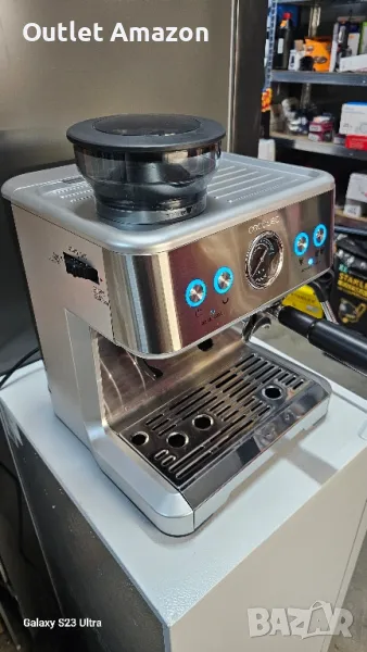 За домашно и за професионално ползване!! Модела е с 2 термоблока което позволява едновременно правенето на кафе и подгряване на мляко, както и едновременно правене на кафе в 2те гнезда. Разполага с 2 гнезда за правене на кафе. Има вградена мелачка с помощта на която кафето се смила пред вас и по този начин получавате ароматно и прясно смляно кафе. Модела е специално разработен за любителите на ароматното кафе посредством специалната система ''BARISTA AROMA '' на CUMBIA. Умопомрачителна мощност от 2900 W което заедно с 20 бара помпа гарантира 100% ароматно и професионално кафе!. Характеристики: LED индикатор