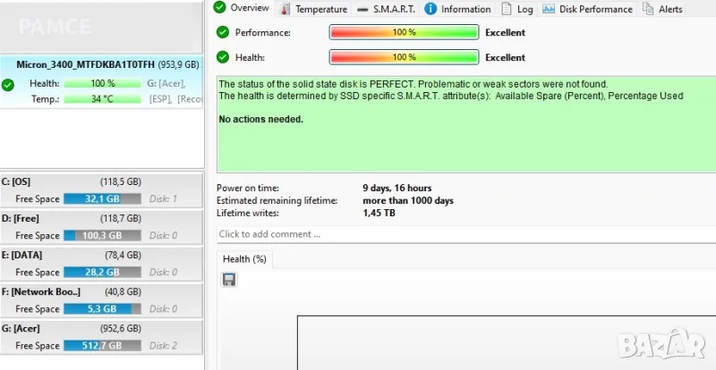 - Диск М2 NVMe 4x4 1TB Micron3400 - 232ч - 100% - Продаден