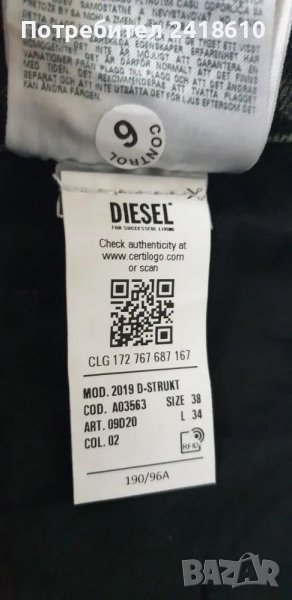 Diesel D - Struct Slim Fit Mens Size 38/34 НОВО! ОРИГИНАЛ! Мъжки Дънки!