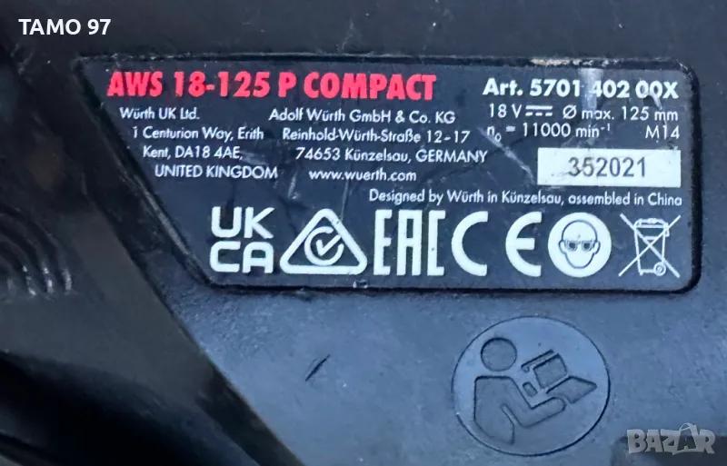 2. Безчетков ъглошлайф: Wurth AWS 18-125 P Compact