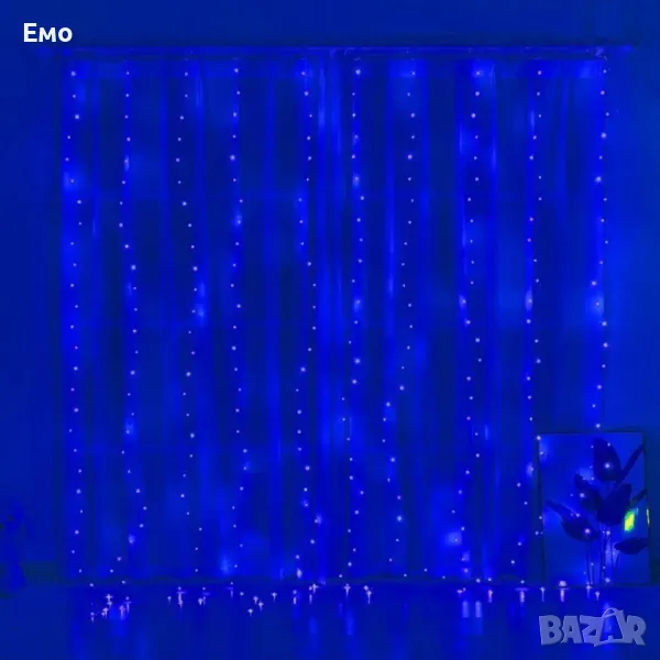 Коледни лампички с 300 LED, 3м x 3м, коледна завеса с дистанционно