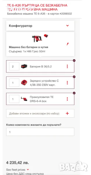 Магазинската цена на комплекта е: 4 235лв. БЕЗ ДДС (С ДДС е 5 082лв)