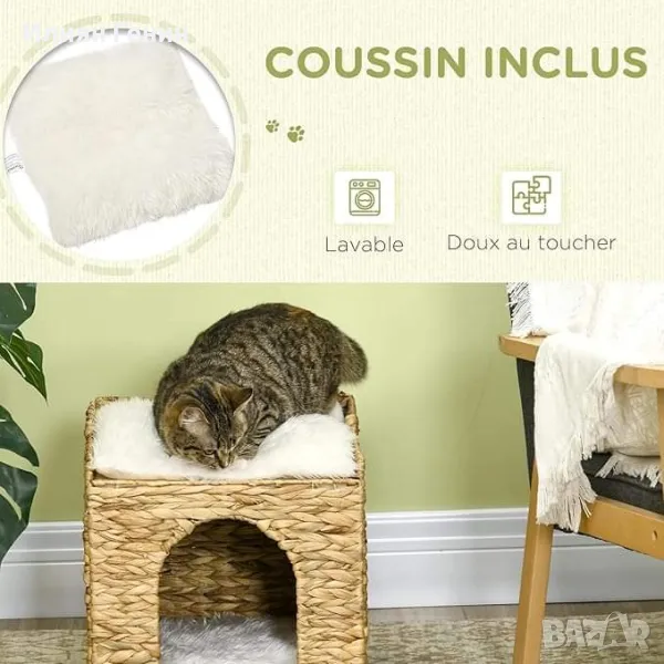 ● Голям комфорт с 2 меки възглавници, за да създадете истинско уютно гнездо за вашата котка