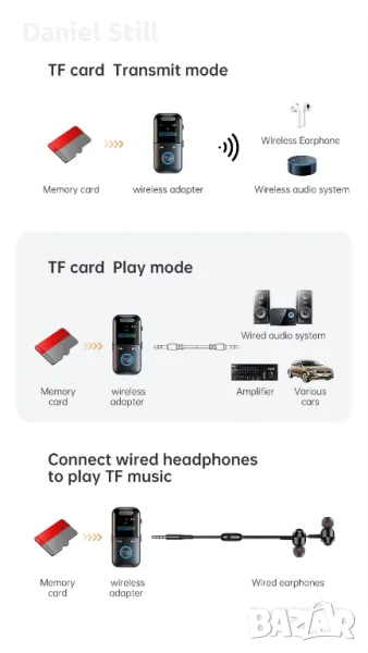 Възпроизвеждане на TF карта: Поддръжка (Поддържа до 64G)