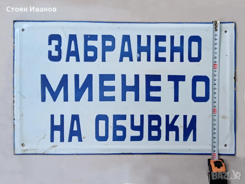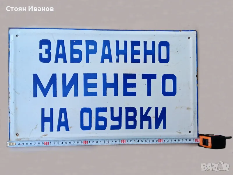 Рядка голяма стара емайлирана Соц. табела - ЗАБРАНЕНО МИЕНЕТО НА ОБУВКИ → Обява 48219058