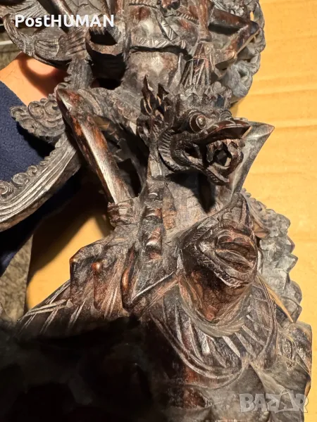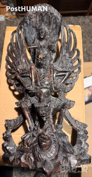 Статуетка Вишну върху Гаруда - дърворезба → Обява 48220435