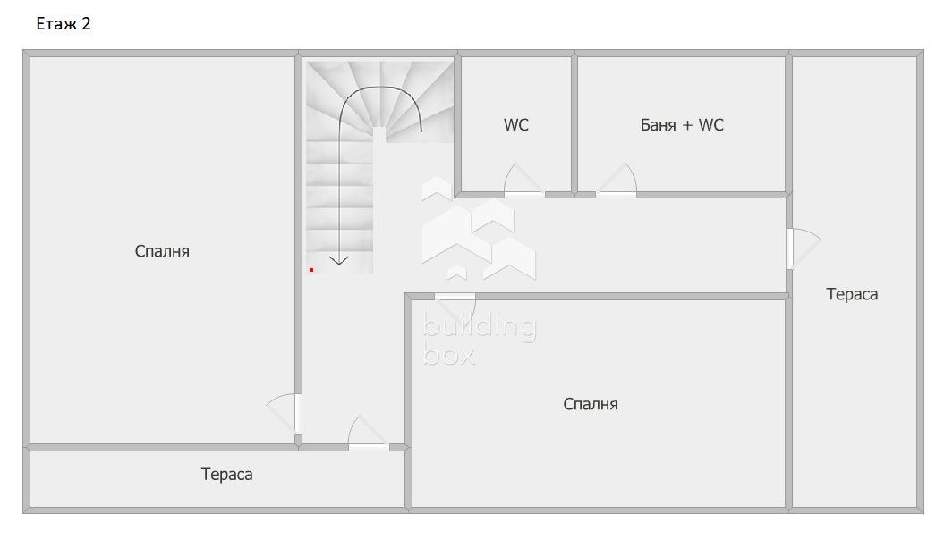 Сграда 2 - Къща за гости с обща площ 78 кв.м., с 3 спални, баня с тоалетна, банкетна зала с камина, веранда и барбекю.