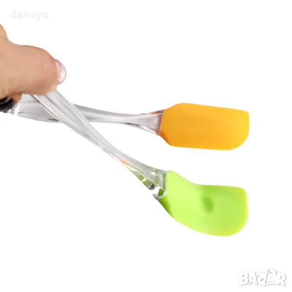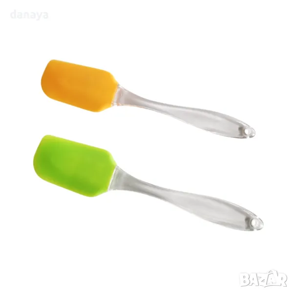 Малка сладкарска шпатула. Силиконова незалепваща лопатка тип шпатула за кремове и торти. Чудесна за разбъркване в пластмасови и стоманени купи и съдове с незалепващо покритие. Дръжката е изработена от прозрачна пластмаса, с дупка за закачане. Кухненски прибор, който е нужен за всяка кухня. Шпатулите се предлагат в различни цветове – зелен, оранжев.