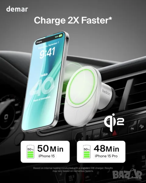 Belkin BoostCharge Pro Магнитно безжично зарядно за кола с Qi2 15W