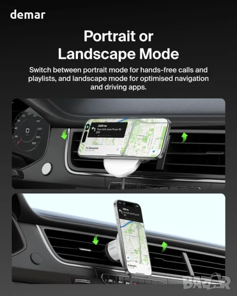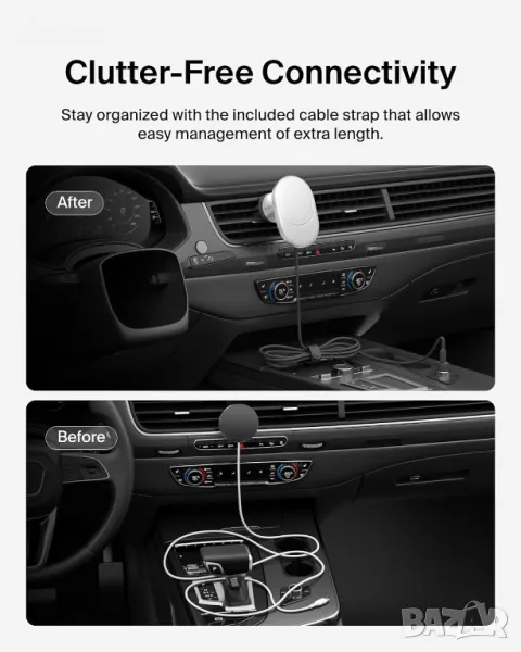 Заредете бързо своя iPhone или съвместимо с Qi2 устройство до 15 W с магнитна стойка за вентилационен отвор, включваща мощен модул MagSafe за сигурно подравняване и стабилно закрепване, дори на неравни пътища. Превключвайте лесно между портретна и пейзажна ориентация за зареждане, разговори или навигация. Проектиран с удобно управление на кабела и съвместимост с калъфи MagSafe до 3 мм, той гарантира използване без оплитане и безпроблемно зареждане.