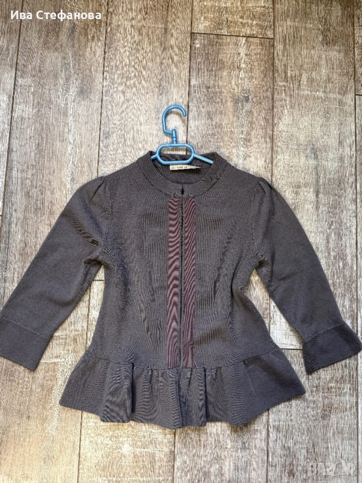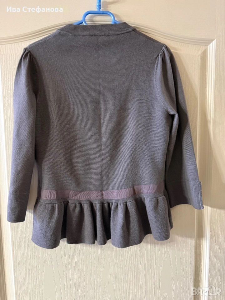 Размер С\M родавам този супер сладък къс пеплум кардиган от Karen Millen с ръкави 3/4. В красив гъбено-сив цвят, който си отива с всичко!