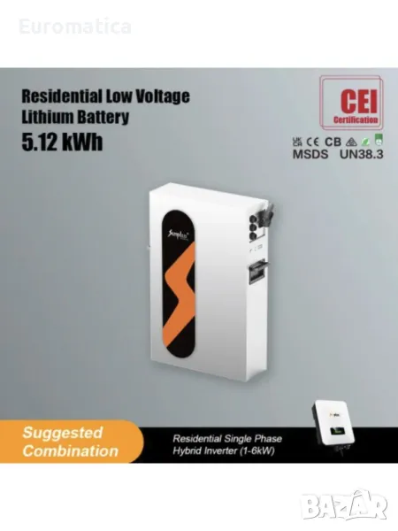 Литиева батерия Sunplus 5 kWh LifePo4 - Нисковолтова - 1 бр.