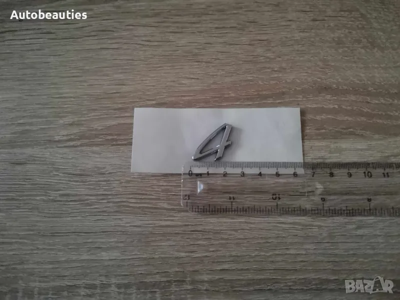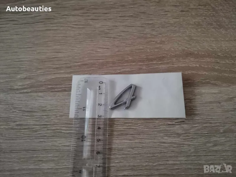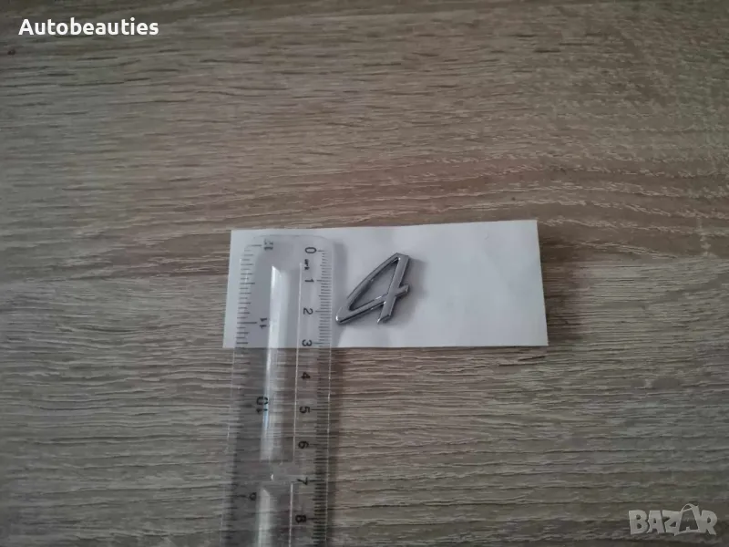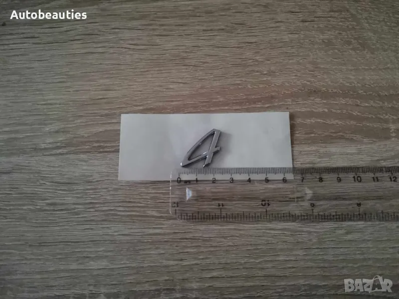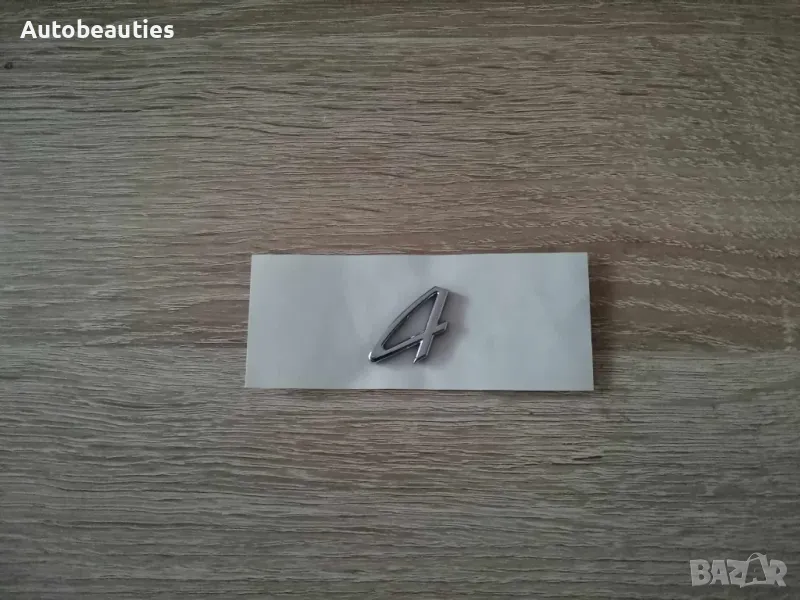 сребрист надпис 4, подходящ за всички модели Porsche. Размерите са дадени на снимките (3 см х 2см).