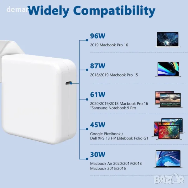 Това компактно и преносимо 100W USB-C зарядно устройство е предназначено за MacBook и USB-C устройства, като предлага бързо, ефективно зареждане с протокол Power Delivery за автоматично оптимизиране на мощността при множество мощности. Може да зарежда 14-инчов MacBook Pro до 50% за 30 минути и поддържа широка гама от устройства, включително модели MacBook, iPad, лаптопи и смартфони. Изработен от висококачествени огнеустойчиви материали и интелигентен чип, той осигурява защита срещу прегряване, късо съединение и претоварване, докато незаплитащият се 2M USB-C към C кабел добавя удобство за използване в движение. Усъвършенстваният интелигентен чип точно идентифицира нуждите от захранване на устройството, осигурявайки бързо и надеждно зареждане с повишена безопасност и издръжливост.