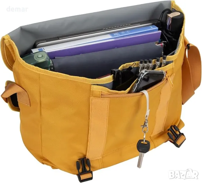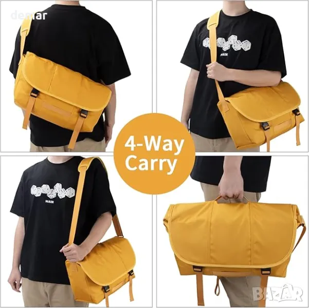 Тази куриерска чанта съчетава класически дизайн с първокласна водоустойчива найлонова тъкан за издръжливост и стил. Разполага с регулируеми, подплатени презрамки за комфорт, множество отделения, включително подплатена секция за лаптоп (съвместима с 15,6/17 инча), реконфигурируем калъф за камера и джобове за бутилки, ключове и др. Лек, но просторен, той е универсален за работа, училище, пътуване или фотография и е устойчив на надраскване за лесна поддръжка. Подходящ за мъже и жени, той е отличен подарък за различни поводи.