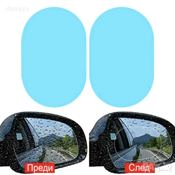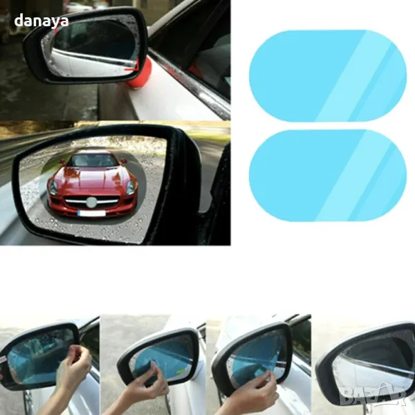 Комплект от 2 броя защитни фолиа за огледала на автомобил против запотяване, лесни за употреба.