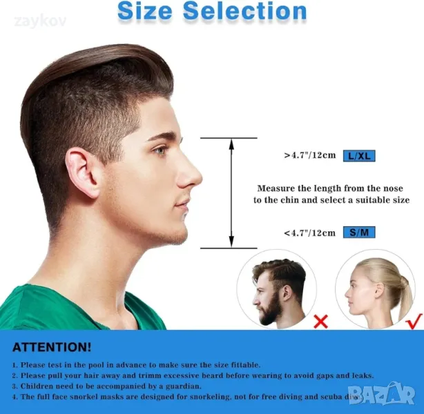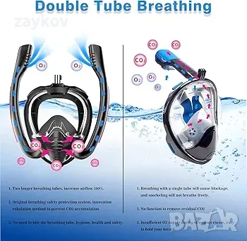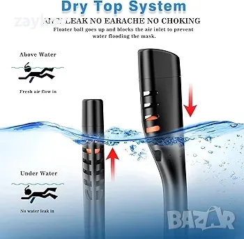 【Суха маска за гмуркане с шнорхел, дишайте лесно за начинаещи】Сухата горна част се активира автоматично и се затваря, когато се подводите, за да се гарантира, че водата няма да наводни маската. Веднъж на повърхността, клапата се отваря, за да ви позволи да дишате. Маската за гмуркане с шнорхел против изтичане ви позволява да дишате естествено през носа и устата си под вода и ви поддържа спокойни и отпуснати във водата.