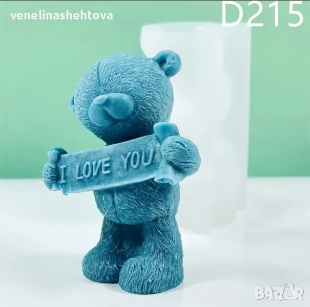 3D 2 модела Обичам те Мече държи надпис" I love you" Силиконов молд за свещи гипс сапун → Обява 48227832