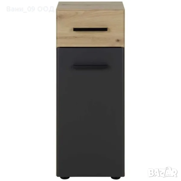 шкаф за баня с размери Ш:30/Д:30/В:75.9 см, за оптималното подреждане на тоалетните принадлежности, както и вещи от първа необходимост. Независимо, че е с малки размери, шкафчето е много практично. Предназначено е за поставяне на пода, като притежава едно чекмедже и една вратичка, зад която е монтиран рафт.