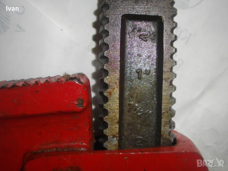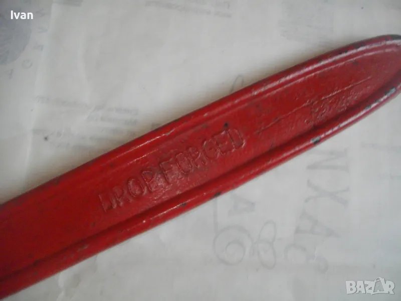 Описание на червен голям ключ 2 цола - 199 лв. Почти нов голяма,масивен,висококачествен водопроводен шарнирен ключ,с размер на отваряне до 2 цола.Цялостна дължина на инструмента-61см,отваряне на челюстите-до 8 см.Означения при различните размери.Ключа е немско оригинално професионално производство.Марка-Drop Forced.Размер на ключа по стандарт-24.Тежък,голям,масивен,колоритен.Съвсем малко ползван,много запазен външен вид и отлично техническо състояние.Дълбоки зъби за захват на челюстите,които нямат никакво износване.