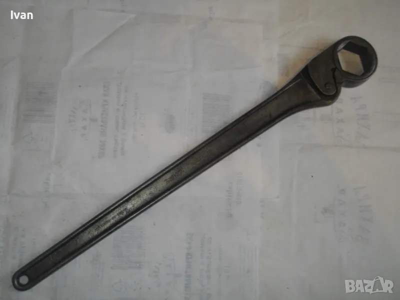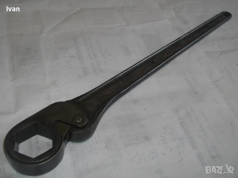 Съвсем нов, неизползван и неупотребяван тресчотъчен голям гаечен ключ на ГЕДОРЕ, размер 31 мм - 25 инча захват, тип тресчотка с триене с сдвушестостен пръстен.