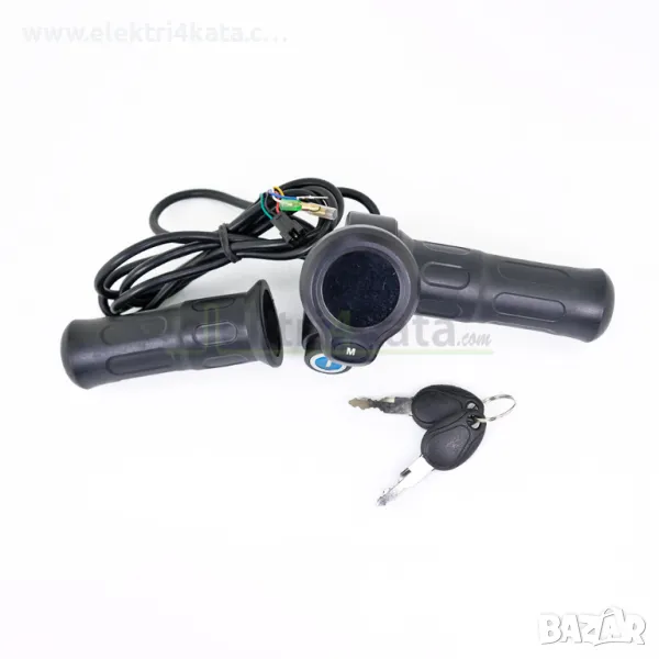 Ръкохватка за газ (масур) 24V-72V с контактен ключ и дисплей се монтира лесно и притежава изчистен дизайн, антиплъзгаща повърхност, която гарантира комфортно и стабилно захващане. Вграденият контактен ключ, разположен в долната част, осигурява сигурно управление на включването и изключването на превозното средство. Дисплеят предоставя информация в реално време за напрежението на батерията, скоростта и изминатите километри, правейки я практичен и функционален избор.