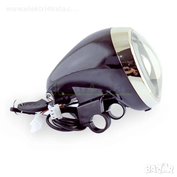 LED фар с дневна светлина за електрически скутер Citycoco (60V) е подходящ за електрически скутери, вкл. Citycoco, триколки и други модели, работещи с напрежение от 60V. Фарът има вграден ключ за контакт и панел за показване на информация за заряд на батерията. Разполага също с вграден клаксон и индикатор, който показва кога фарът е включен. Силното осветление осигурява отлична видимост през нощта, а дневните светлини подобряват безопасността през деня. осигурявайки отлична видимост през нощта и в условия на слаба видимост.