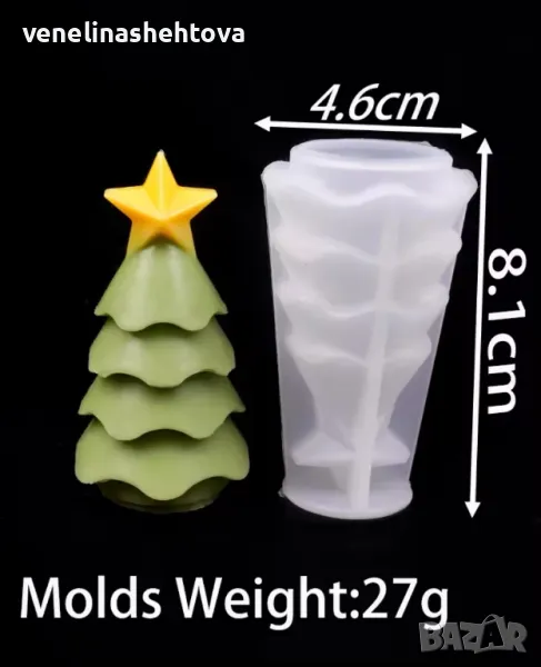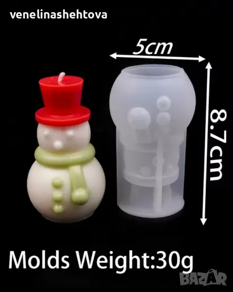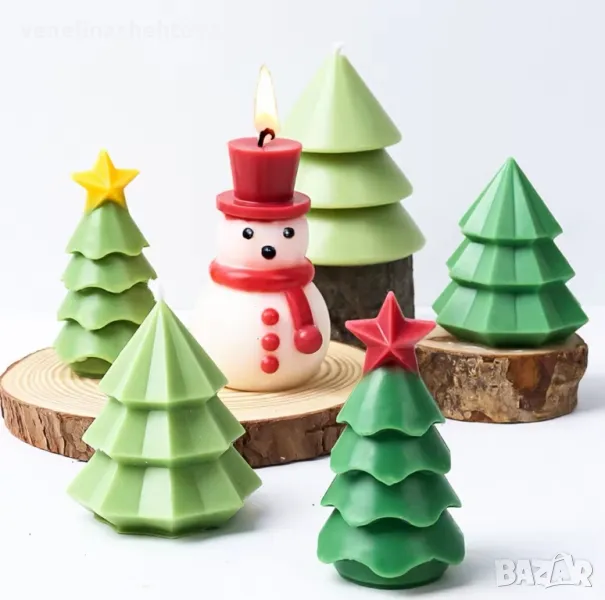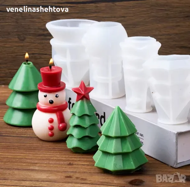 3D Елха със звезда снежен човек с шапка шал Силиконов молд за свещи гипс сапун → Обява 48230640