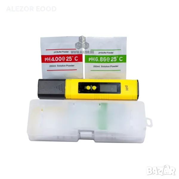 Комплектът включва: рН метър, батерии, отвертка, 2 броя разтвори за калибриране, кутия за съхранение, инструкция за експлоатация на български език