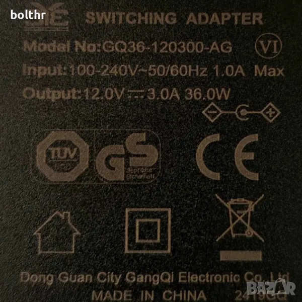 Входящо напрежение: от 100 до 240 волта Изходящо напрежение: 12 Волта 3.0 Ампера 36 Вата 5.5 mm диаметър на конектора