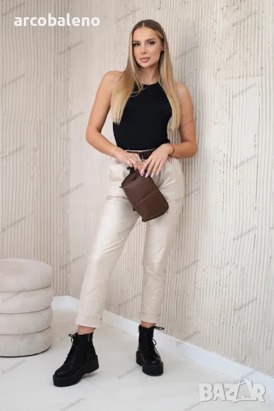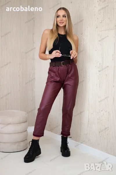 Восъчен панталон с колан е стилно и модерно предложение за хора, които ценят модерната визия и удобството. Изработени от материал с восъчна, леко блестяща текстура, те придават на стайлинга смел и елегантен характер. Вталената кройка подчертава силуета, а коланът на талията придава изразителност на цялото и осигурява перфектно прилягане. Тези панталони ще работят чудесно в ежедневни и по-изискани комплекти, както за ежедневието, така и за вечерни излизания, предлагайки уникална, модерна визия. Размерът е универсален и ще бъде подходящ за жени, носещи размери S, M или L.