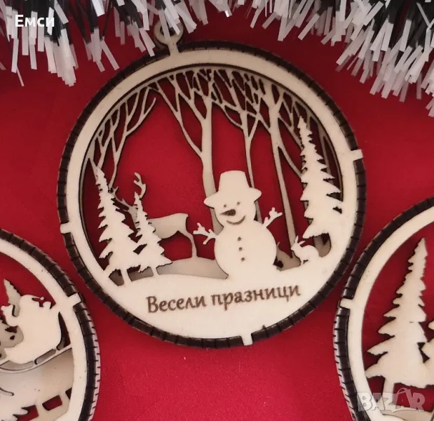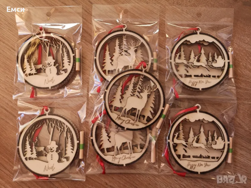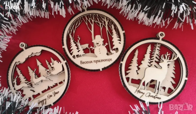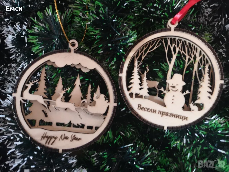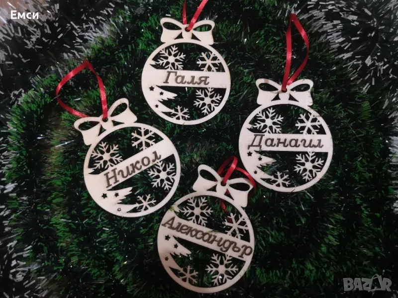 Много модели дървени коледни фигурки, топки, играчки за елха с гравирано име, текст, надпис по ваше желание. Идеални за добавяне към коледен подарък за близки, приятели и колеги.