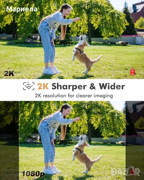 Захранвана със слънчева енергия камера за сигурност на открито може да завърти главата си на 336° хоризонтално и 108° вертикално, за да осигури ултраширок зрителен ъгъл, значително намалявайки слепите петна. Контрол на посоката в приложението, имате бърз преглед на всичко около вас. PTZ камерите за сигурност използват усъвършенстван чип, за да осигурят зашеметяващо 2K/3MP изображение с ясни детайли. Прожекторът се включва автоматично, когато човек бъде открит в непрогледна тъмнина и може да види обекти на разстояние до 20метра през нощта.