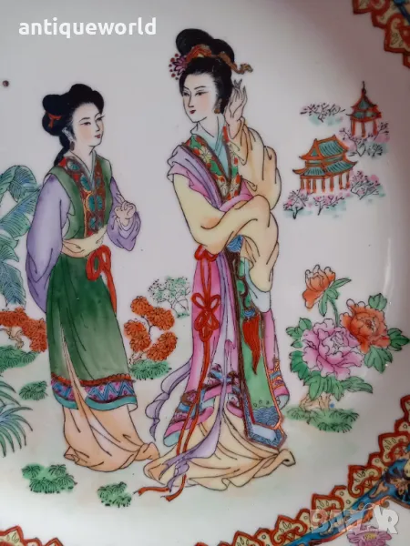 Много Красива Ръчно Рисувана Голяма Китайска Порцеланова Чиния, Маркирана.