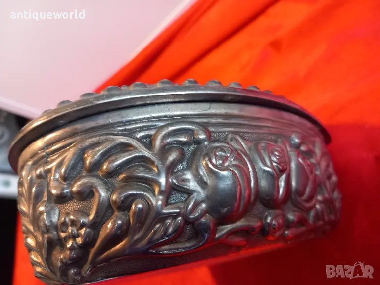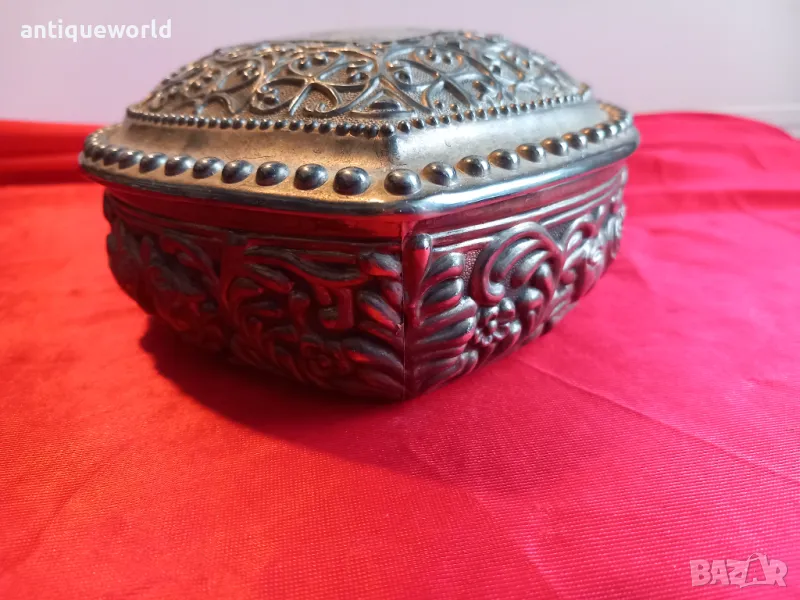 Много Красива Посребрена Масивна Стара Голяма Барокова Орнаментирана Кутия за Бижута.Тегло Над Килограм!