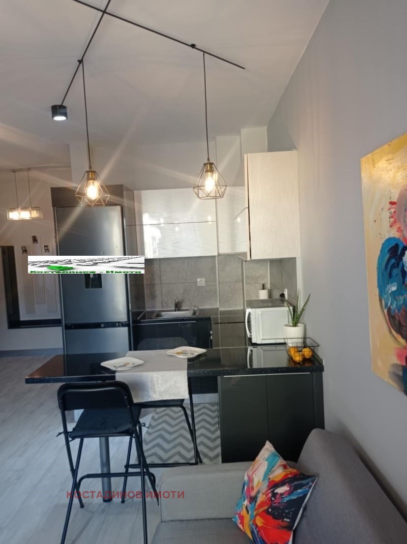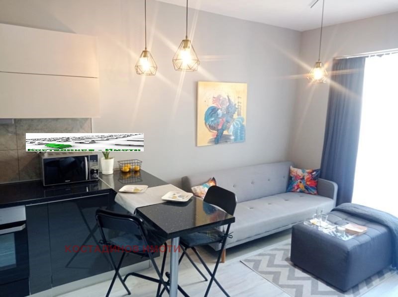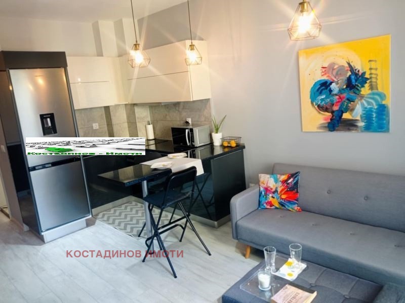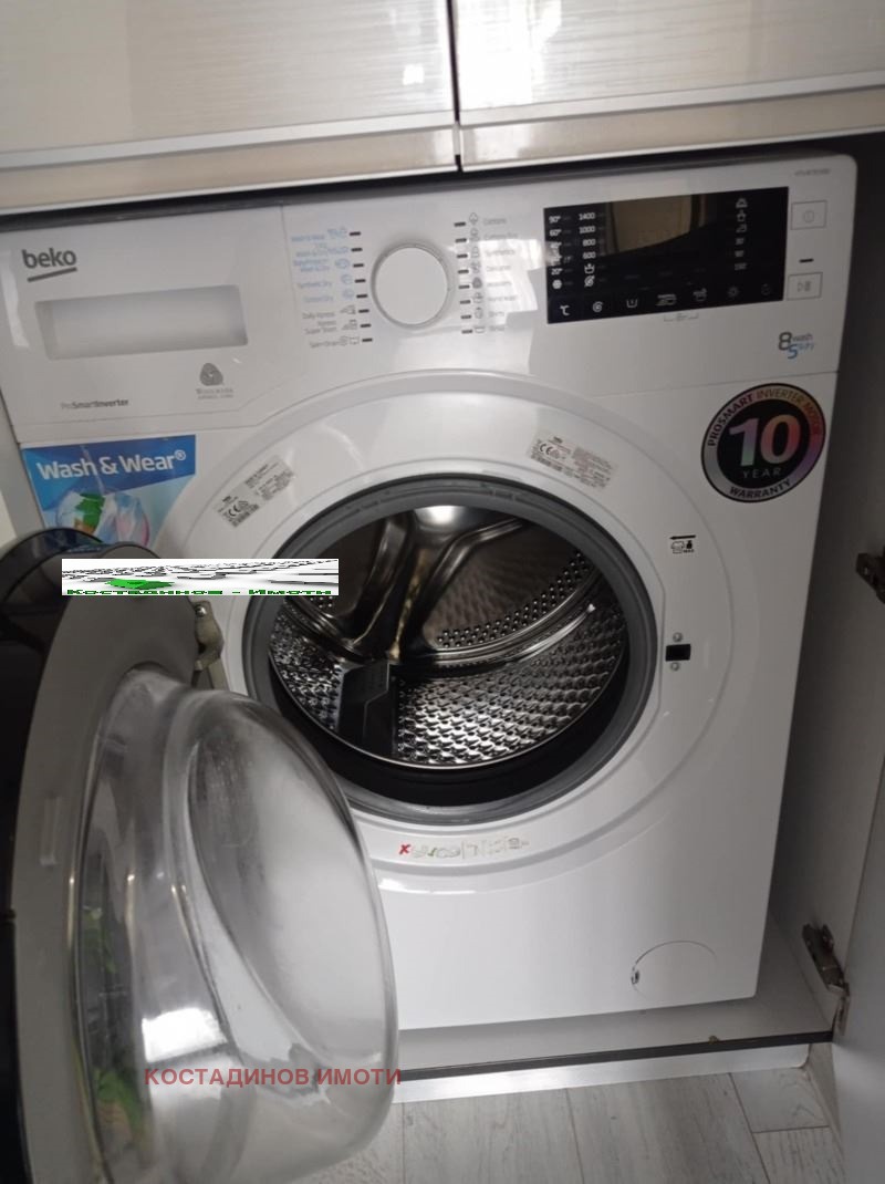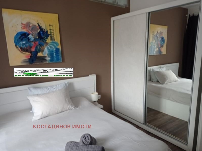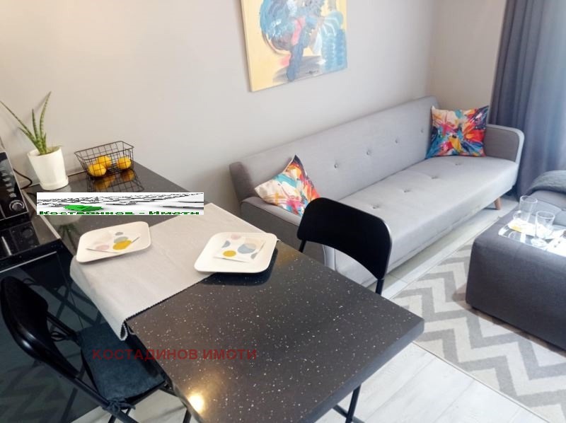 Топло и модерно жилище с терасa, към прекрасно озеленен и поддържан вътрешен двор. Разпределението е коридор и всекидневна с кухненски тракт, диван, шкаф за ТV, бюро ; баня с WC, спалня. Отделна спалня от 13м2, с обширен гардероб,легло 160/190. Заредено е с шалте и постелно бельо /при желание/. Вс. в апартамента е съобразено с нуждите за едно перфектно пребиваване с качествени мебели и уреди с упътвания към тях. Кухня с висок хладилник със фризер 3 отделения, вгр. фурна, микровеле, съдомиялна за 9 комплекта, пералня със сушилня голям капацитет. Съвременен TV Samsung. Диван клик-клак с достатъчна функция сън. В антрето има функционален гардероб. Също дъска за гладене и посуда.