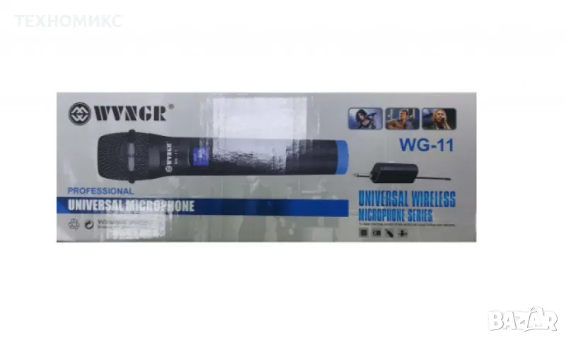 Безжичен микрофон WG-11, динамичен, предавател, приемник, JACK 6.3mm