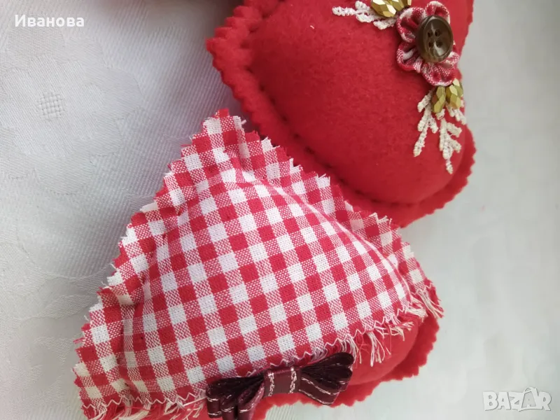 Сърца за декорация 10/8 см.. Материал: полар, пълнеж- вата. Няма лепени части- всичко е пришито. Цената е за брой.
