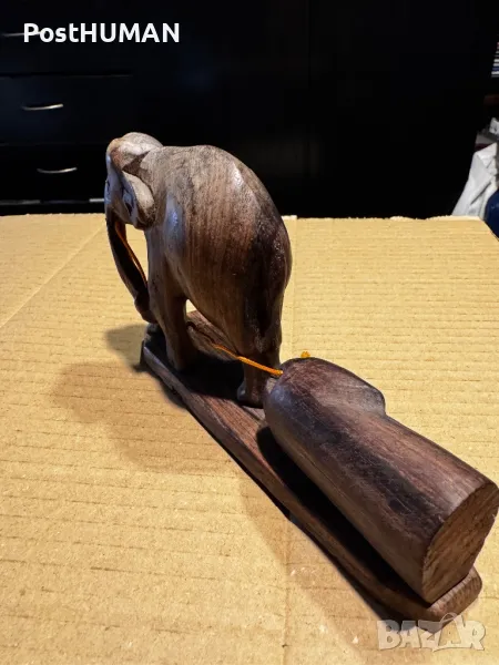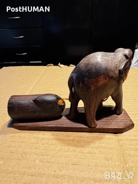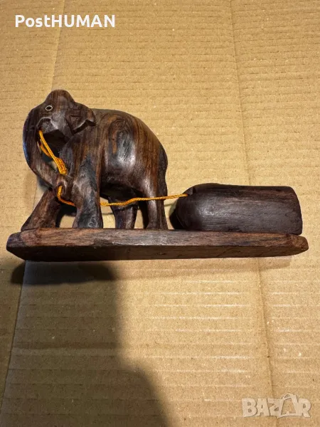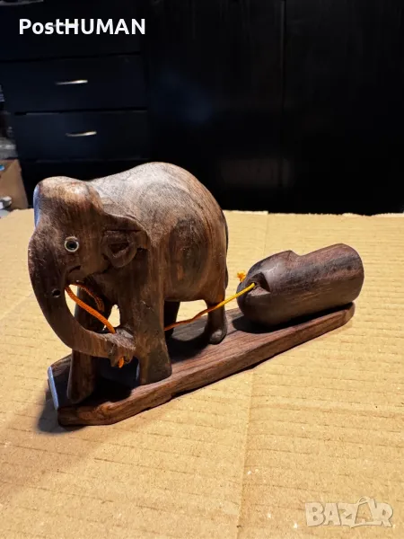 Дървено слонче,теглещо товар,