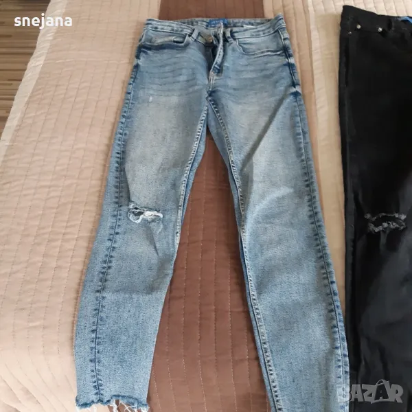 Дънките са като нови ,обувани по два ,три пъти, не повече ,отговарят на дамско S 36, цената е за чифт, трите за 25лв . Без коментар.