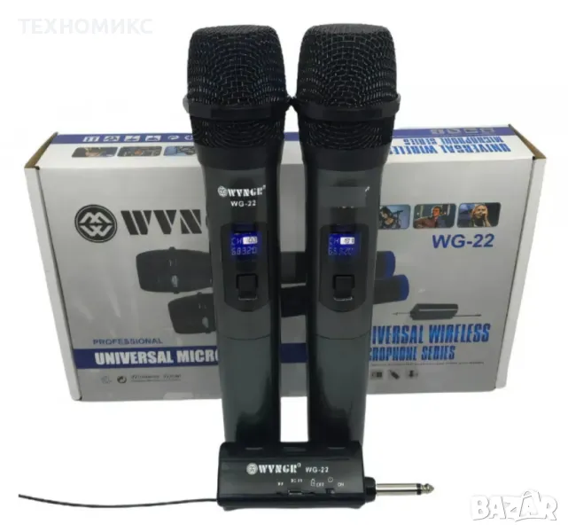Комплект 2 бр. универсални динамични безжични микрофони WG-22,предавател-приемник → Обява 48234310