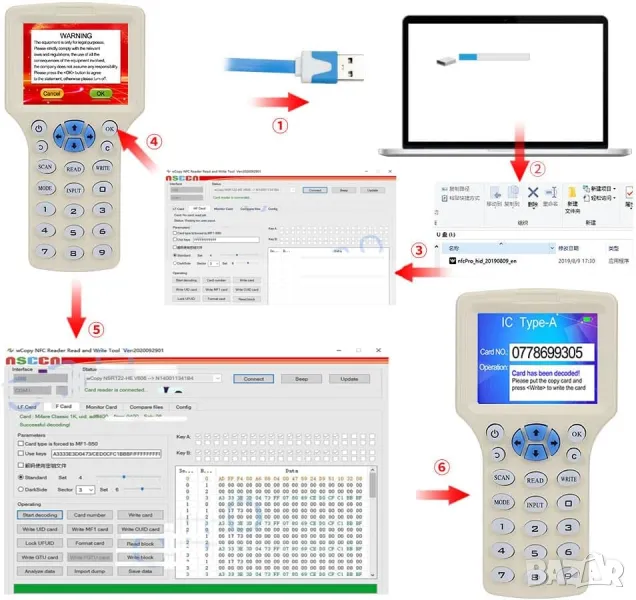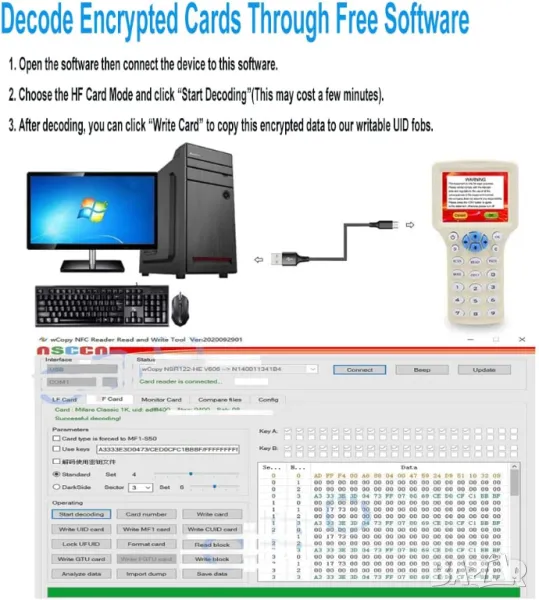 Ако 13,56 MHz картите са криптирани, трябва да използвате софтуерът
