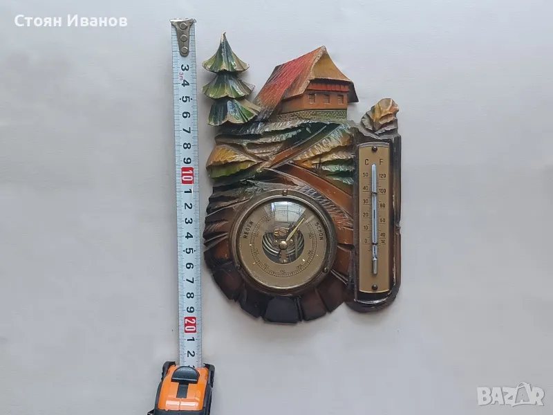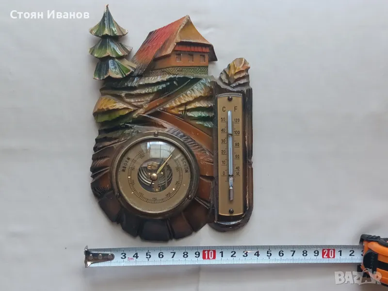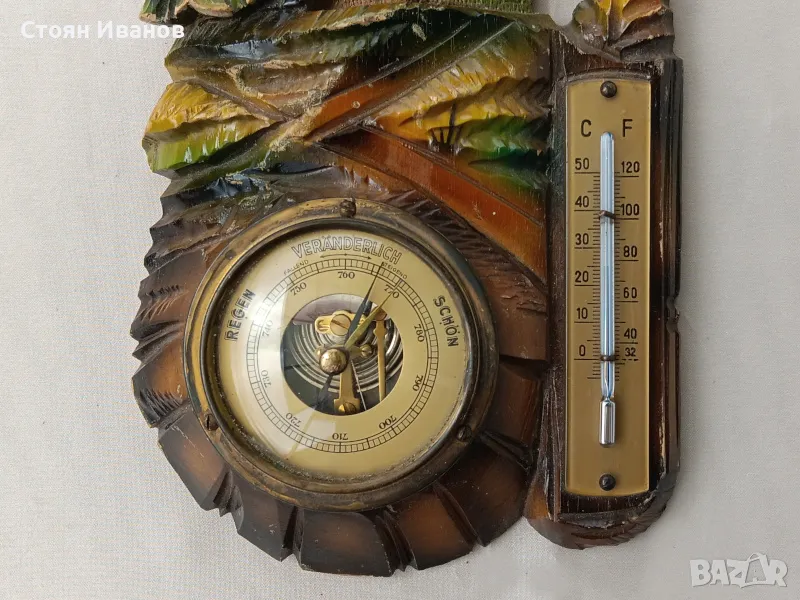 Немска метеостанция барометър със термометър дърворезбаа → Обява 48235889