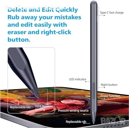 Нов Магнитен стилус за Surface Pro/Go/Laptop с гумичка прецизна Писалка