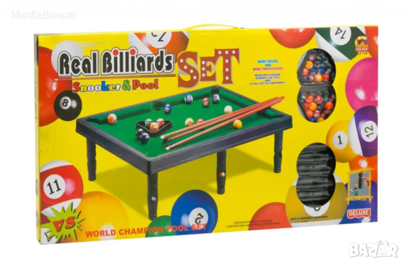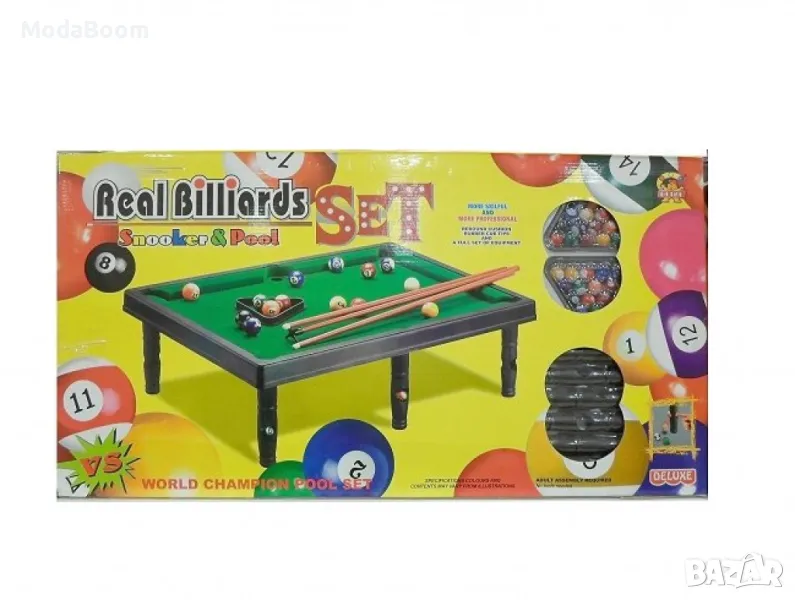 Комплектът за билярд включва пластмасова билярдна маса, щеки и топки за игра. Победете противника и станете победител. Истински билярд в умалени размери, пригоден за деца. Размерите на бирярда в сглобен вид са до 55 х 41 см. Не е подходящ за деца под 3 години.